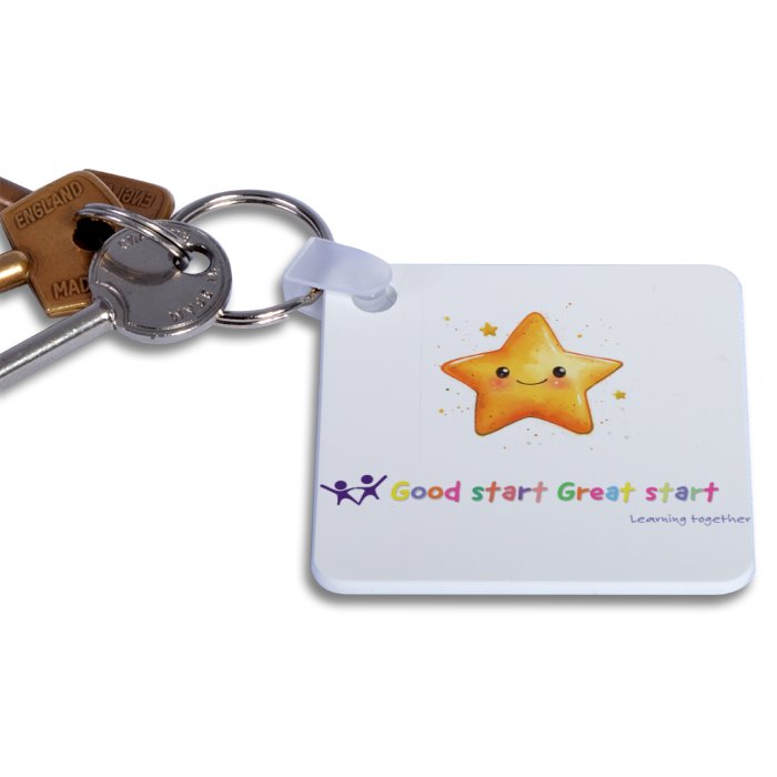Super little GSGS keyring, decorated on one side with the children logo and the other with a star