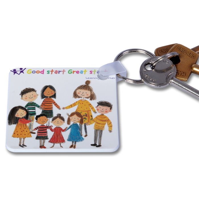 Decorated on both sides this sturdy key ring is a perfect way to promote the GSGS programme.