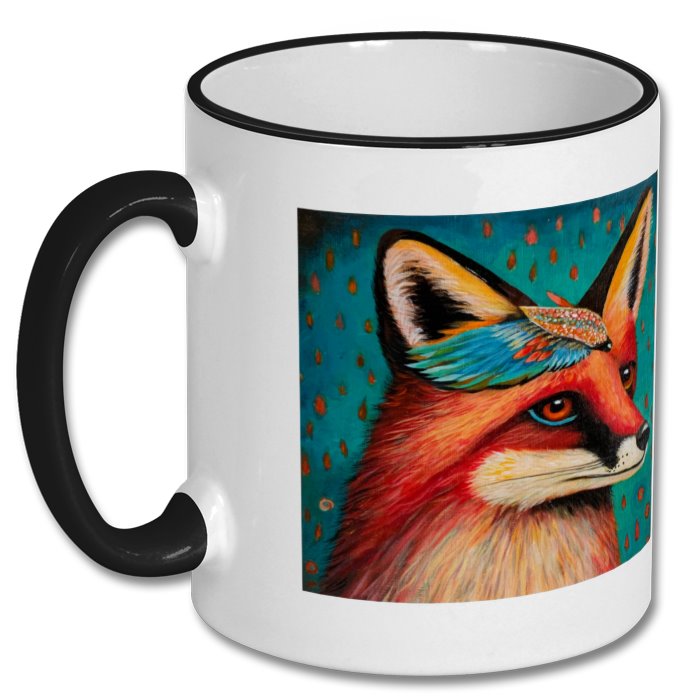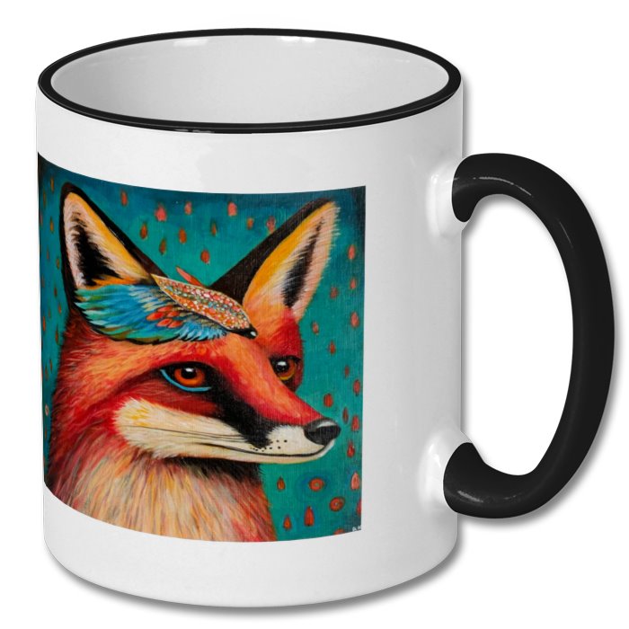Foxy mug with black trim and glossy quality finishDishwasher safeMicrowave safeUV resistantHigh definition colour both inside and outHeight 9cm, diameter 8cm