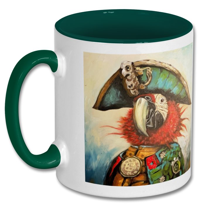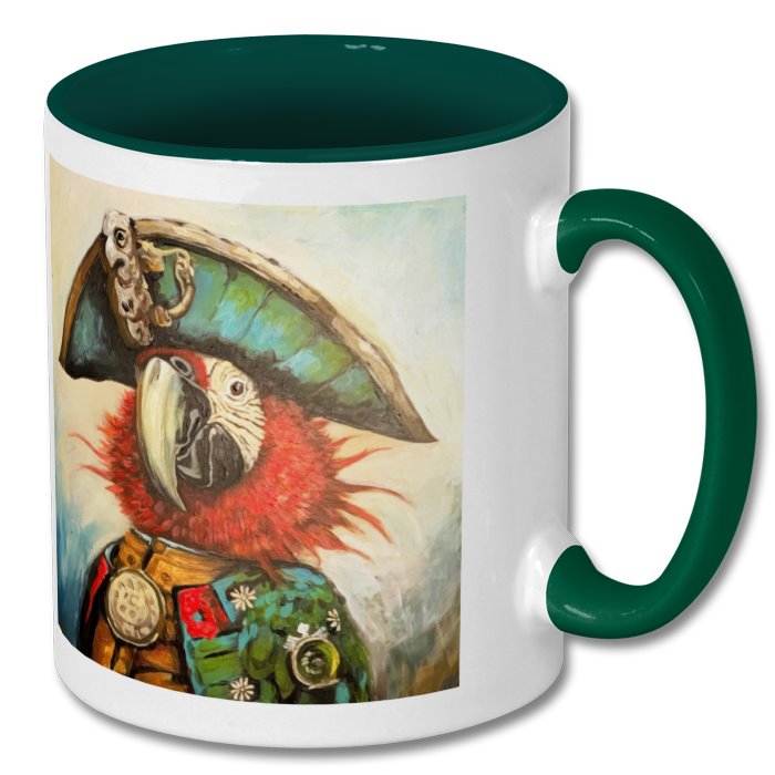 Two tone Parroty mug with glossy quality finishDishwasher safeMicrowave safeUV resistantHigh definition colour both inside and outHeight 9cm, diameter 8cm