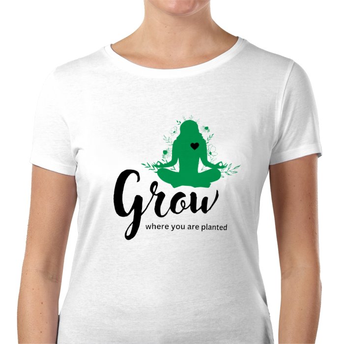 High Quality Printed White Value T-Shirt with GROW WHERE YOU ARE PLANTED design. FITTED