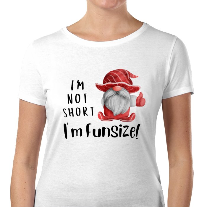 High Quality Printed White Value T-Shirt with I'M NOT SHORT I'M FUNSIZE design. FITTED