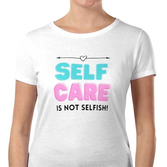 High Quality Printed White Value T-Shirt with SELF CARE IS NOT SELFISH! design. FITTED