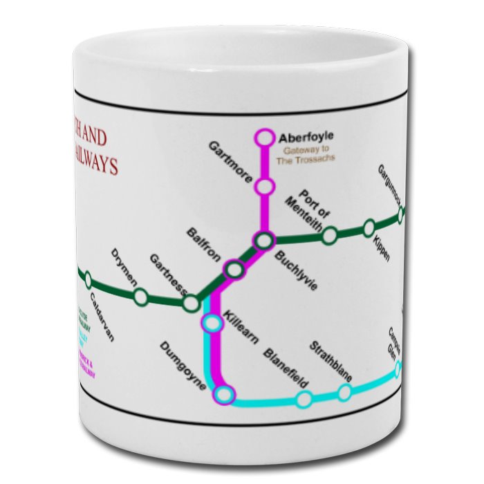 Mug with London Underground style design for Strathendrick and Forth's lost railways.