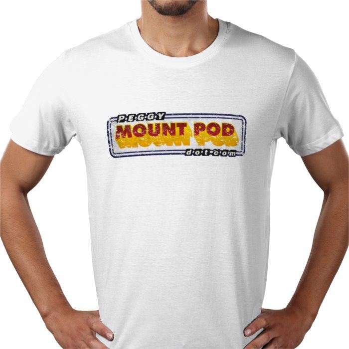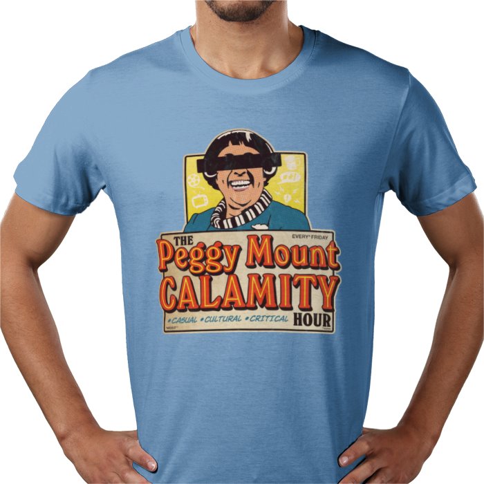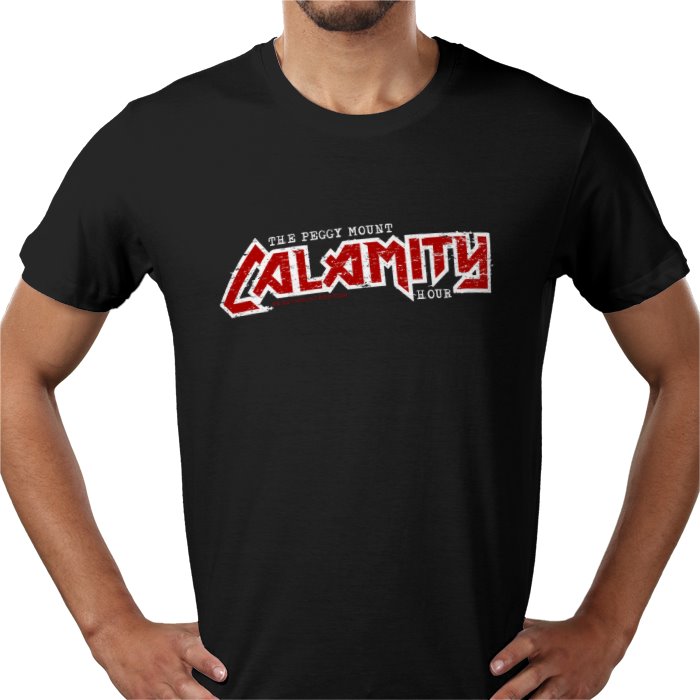 An official Peggy Mount Calamity Hour podcast Tee, styled as series logo only.
