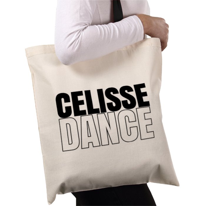 Celisse Dance tote bag.100% Cotton140gsmWeight: 72gSize 38 x 42cmCapacity: 10 LitresHandle length 67cm