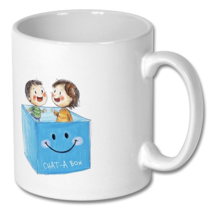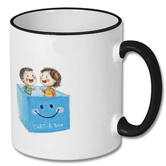 Decorated on both sides this two tone CHAT-A Box mug has a glossy photo quality finish and is dishwasher and microwave safe.