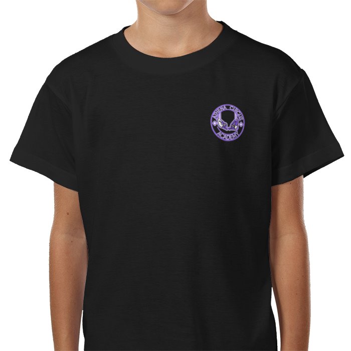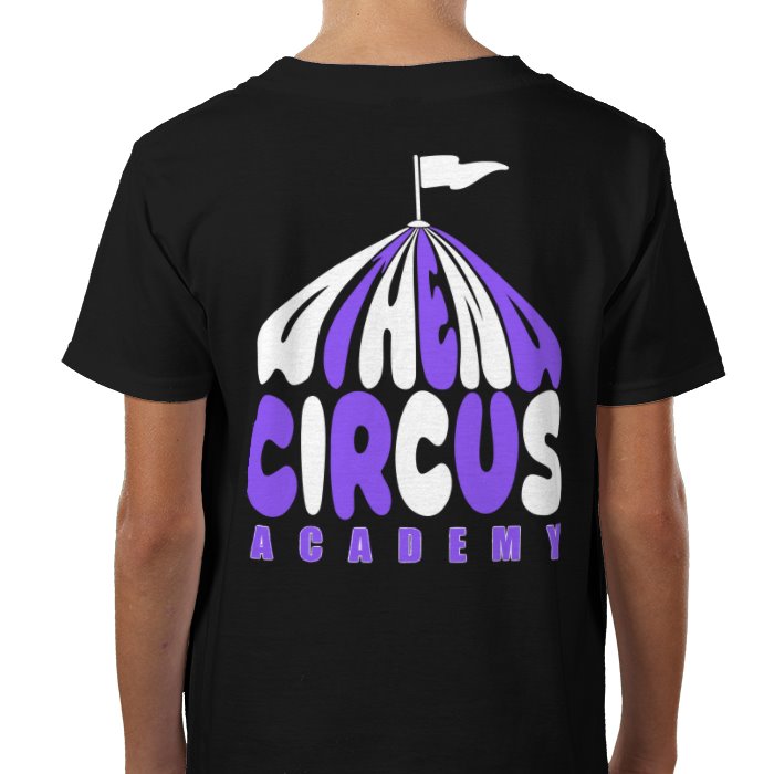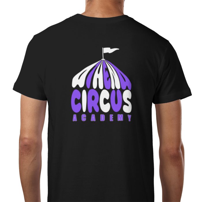 Athena Circus Academy, black tshirt with logo and circus tent design on back