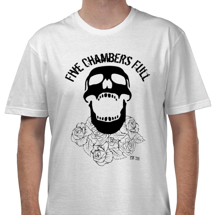 Why not take a stroll through the Garden of the Damned with Five Chambers Full's popular second t-shirt design. Bringing beauty and death together, it represents the band's "leave everything on the stage" mentality. Plus, it looks pretty cool!