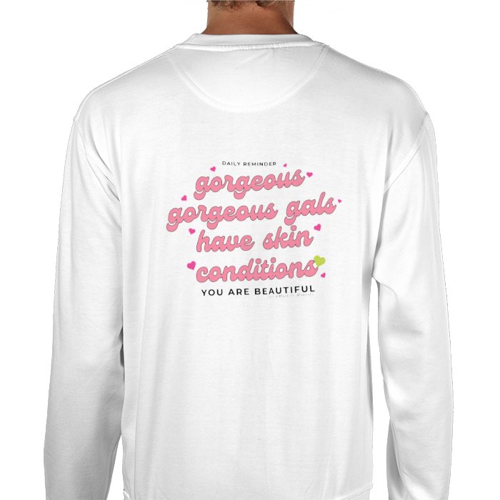 But what truly sets this sweater apart is its message. "Gorgeous Gals" isn't just about conventional beauty standards; it's about embracing your own unique beauty, flaws and all. We believe that beauty comes in many forms, and this sweater is a reminder to celebrate every aspect of yourself, including any skin conditions you may have.