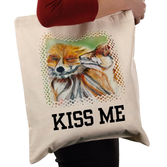 Kissing Foxes design on cotton tote bag