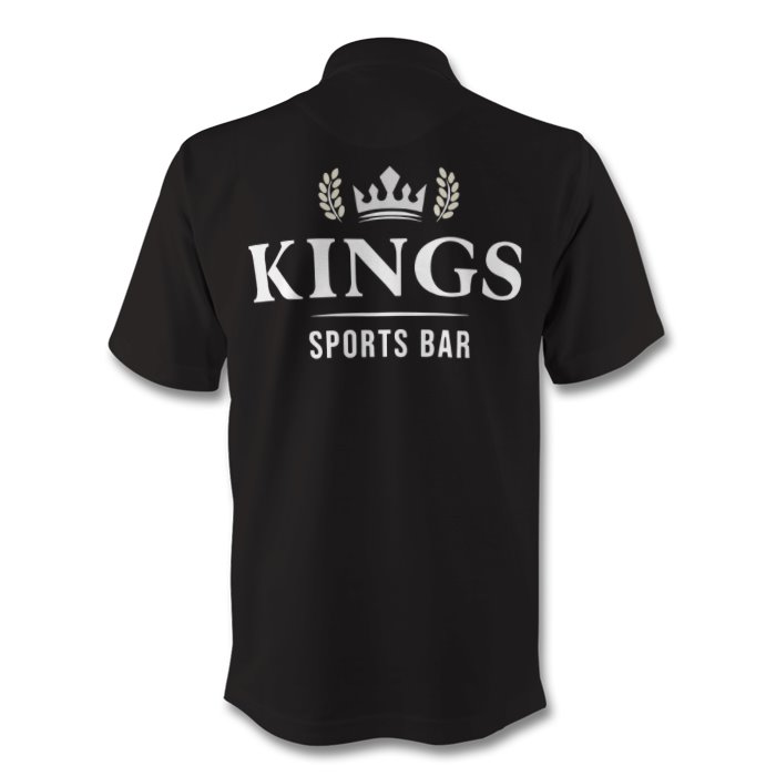 Kings polo shirt in black with our white logo on the front and back.