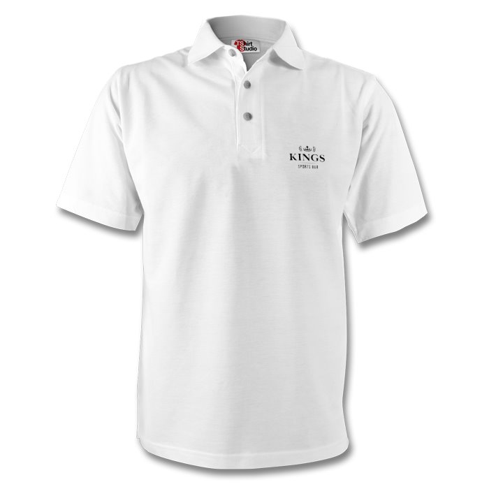 A Kings Polo in white with a black logo on the front.