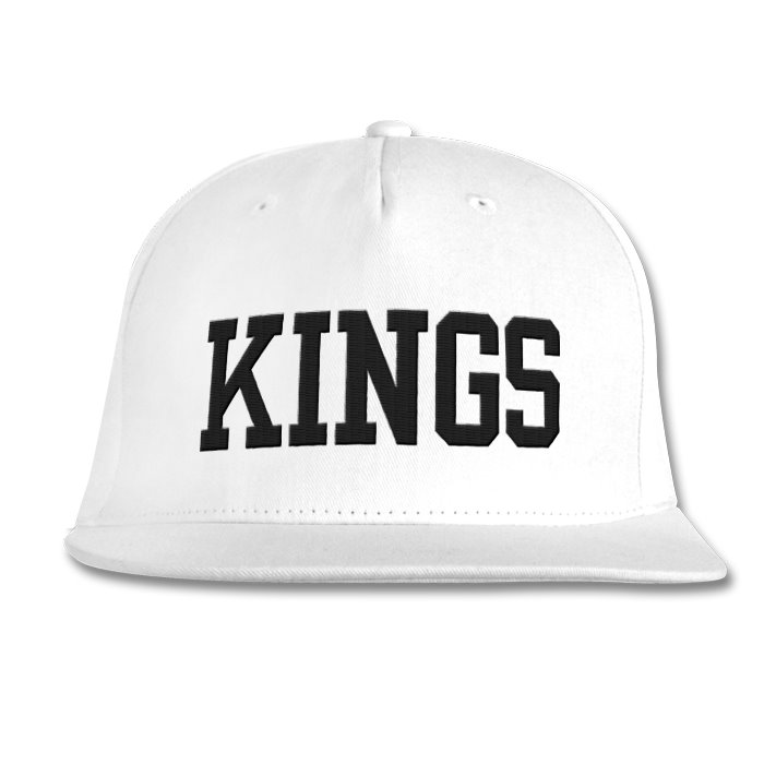 A snapback in white with the Kings name in black.