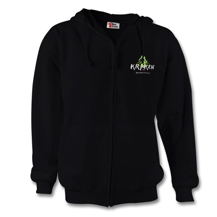 Comfortable zipped hoodie with the Kraken Motorcycle logo. 80% Cotton, 20% Polyester280gsmSplit kangaroo pocketPocket opening for earphone cordDouble lined hoodWarm and fashionableTo fit chest: S 36" M 40" L 44" XL 48" 2XL 52" 3XL 56" 4XL 60" 5XL 64"WRAP certified product (Worldwide Responsible Accredited Production)