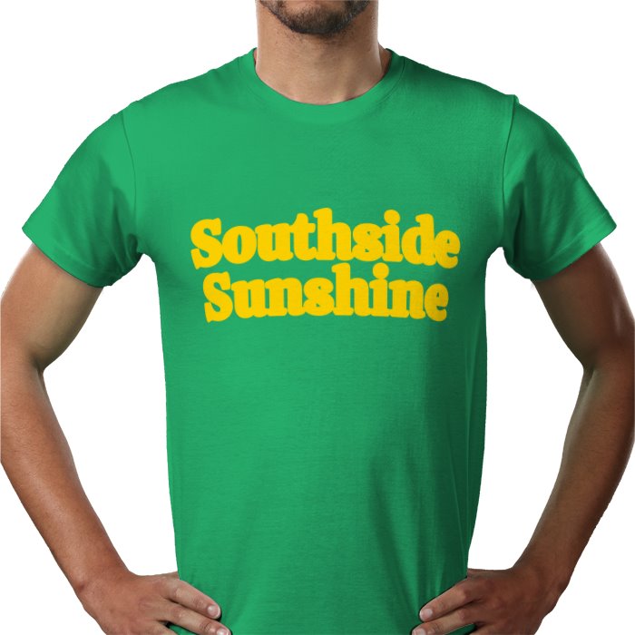 Premium cotton T-shirt. Green with yellow text. Bigging up our popular Southside Sunshine drink. If you know, you know!