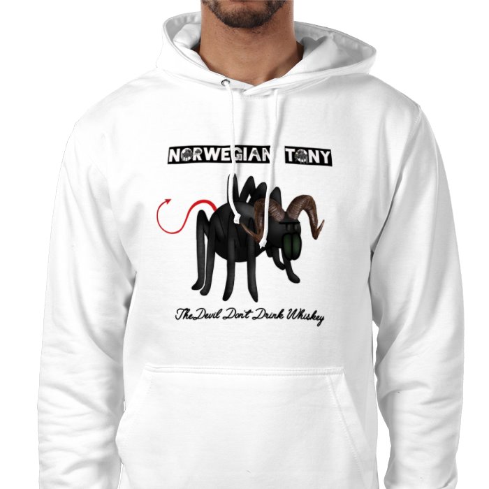 Latest spider design for The Devil Don't Drink Whiskey. White hoodie.