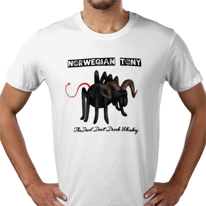 Plain white T with The Devil Don't Drink Whiskey