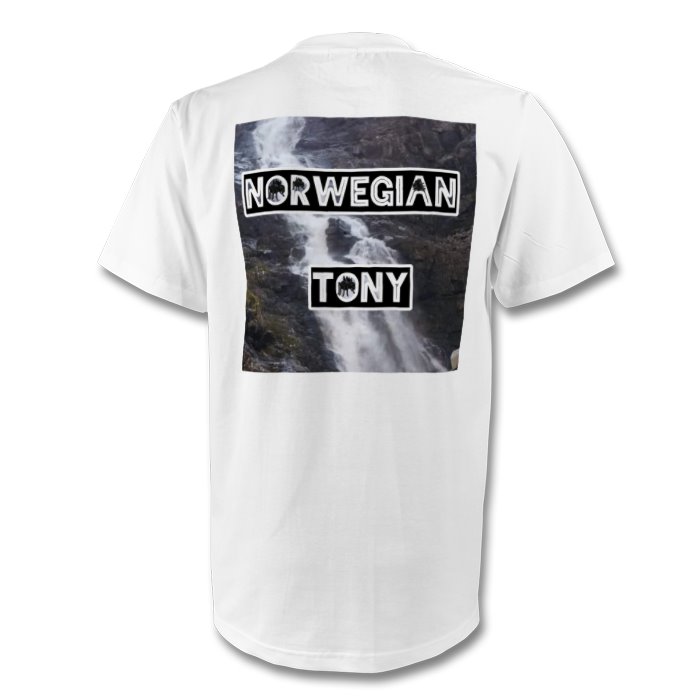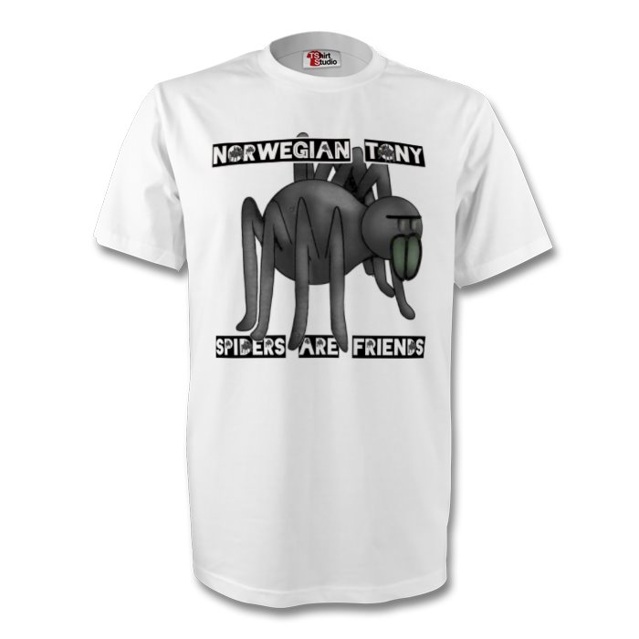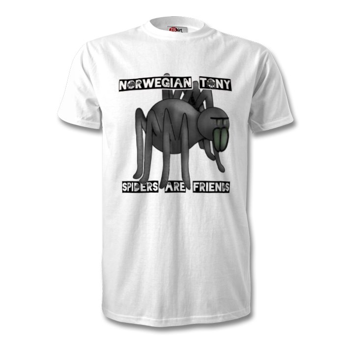 Front: Spiders are Friends with Tube Web logoBack: Trollstigen waterfall with Norwegian Tony logo