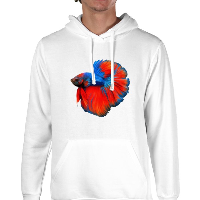 Blue and Red Betta on White Hoodie
