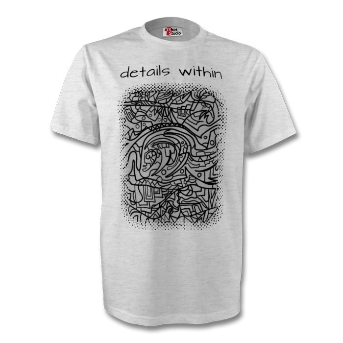 An intricate t-shirt design with details within, showcasing a carefully crafted composition of intricate patterns and elements that reveal new details upon closer inspection.