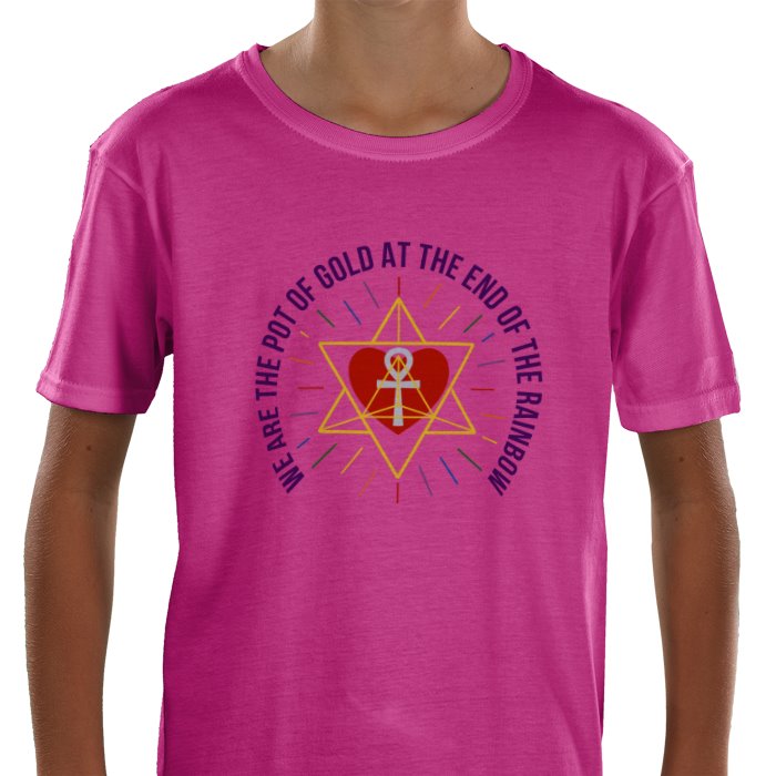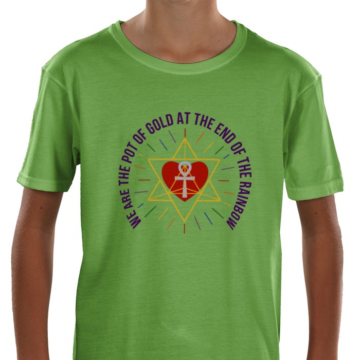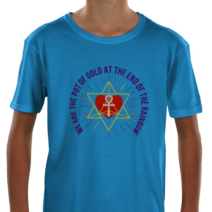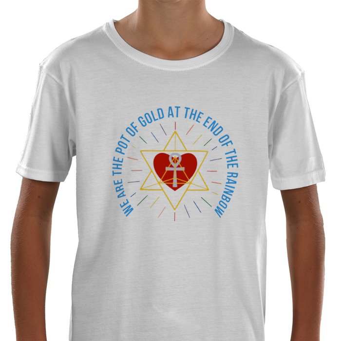 Showing children to look within to discover their pot of gold, 100% Cotton. To fit chest: 1/2 24", 2/3 25", 3/4 26", 5/6 28", 7/8 30", 9/11 32", 12/13 34"