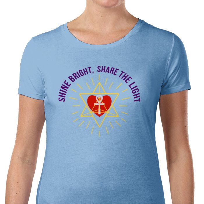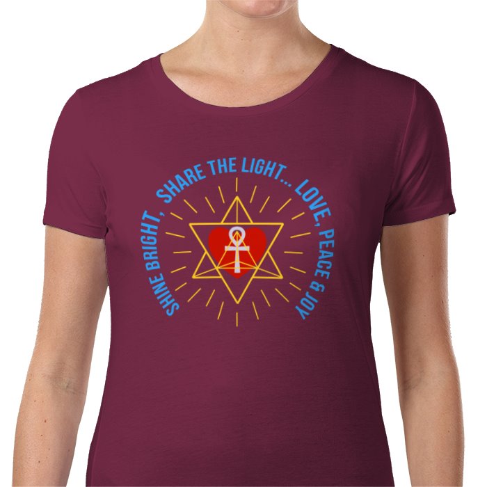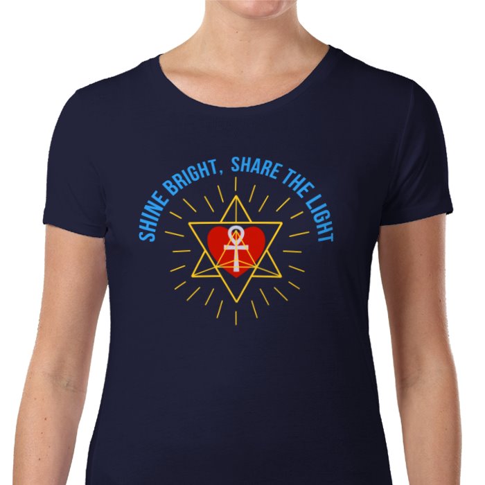 Shine Bright Share The Light T-shirt. Womens premium round neck T-shirt with a fitted feminine shape, 100% Cotton. XS:6 S:8 M:10 L:12 XL:14 2XL:16