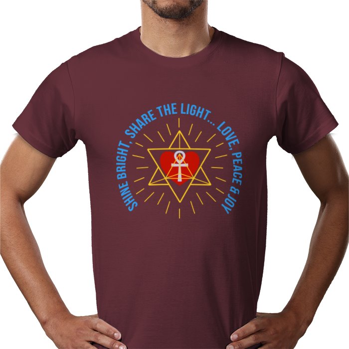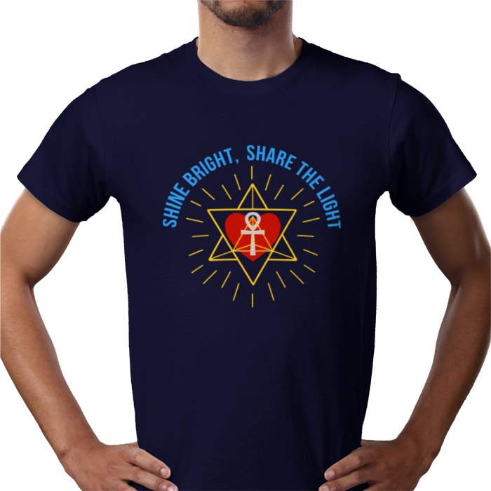 Shine Bright,Share The Light T-shirt. 100% Cotton, Contemporary fit, S 36/38" M 38/40" L 41/42" XL 43/44" 2XL 45/47" 3XL 47/49" 4XL 49/51"