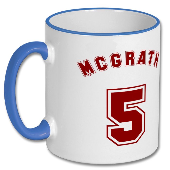 Featuring my illustration of Aston Villa and Ireland International Paul "God" Mcgrath, with number 5 and lettering.