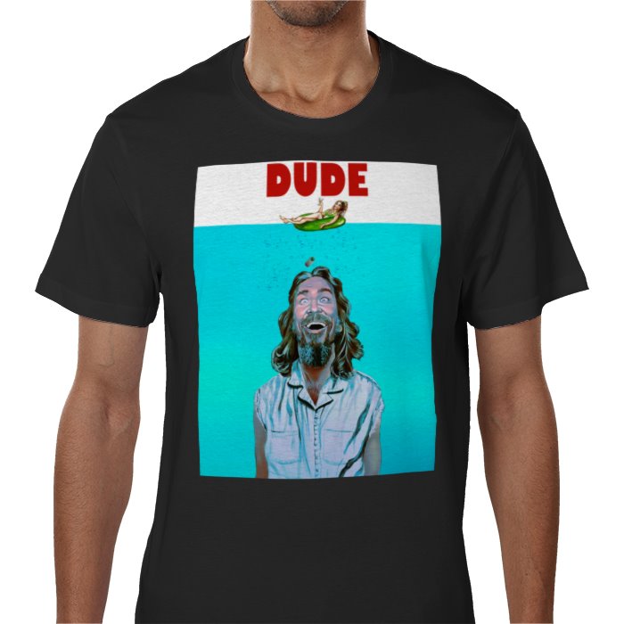 My painting of "the Dude" from the cult movie The Big Lebowski, featured on a parody of the "Jaws" movie poster, that also includes Bunny and a floating toe.