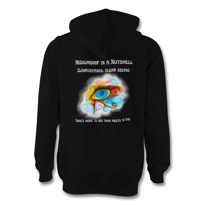 Mediumship in a nutshell, clairvoyance, Hoodie. Clairvoyance: clear seeing, there's more to see than meets the eye. Designed by Spirit Artist Coral Ryder CSNU (art).