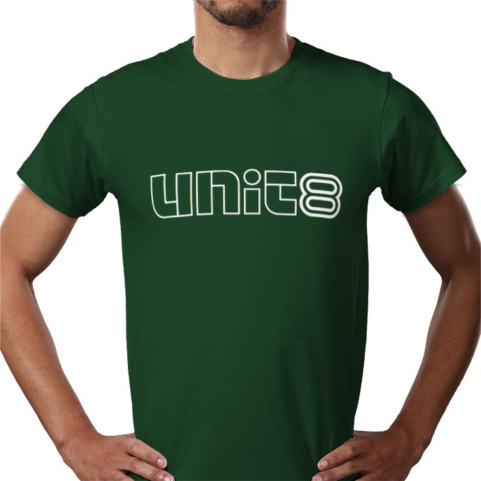 A premium quality Bottle Green T-shirt with White Unit8 logo