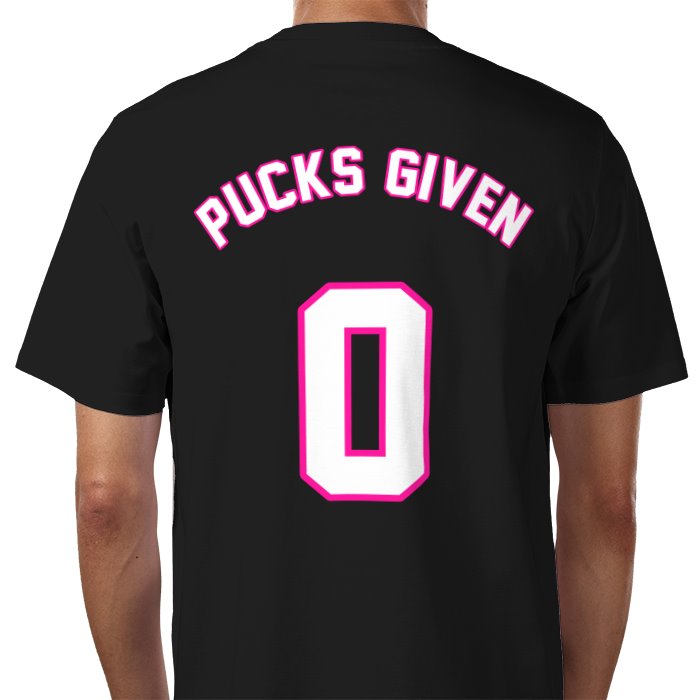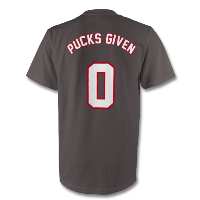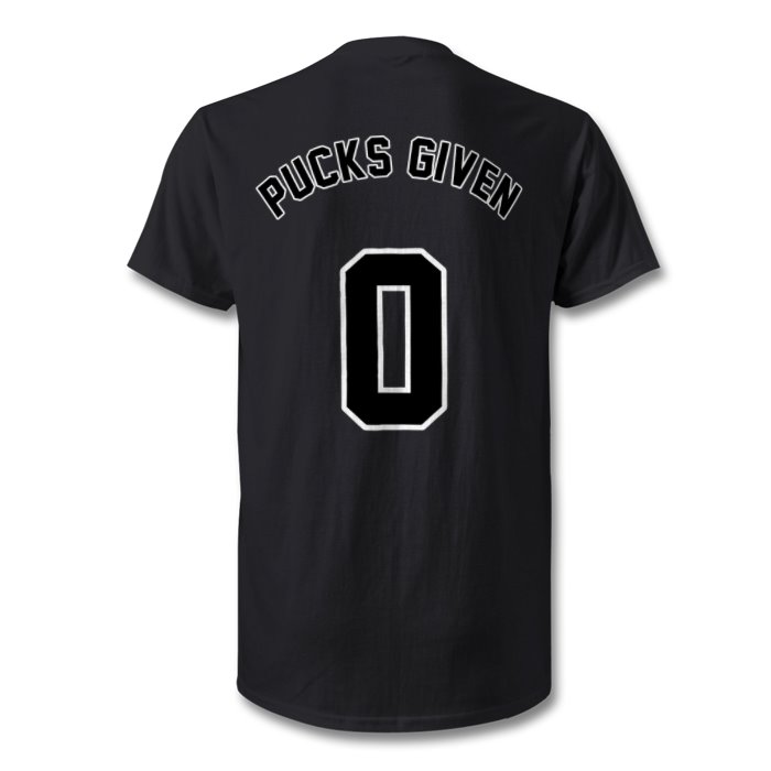 100% Cotton, Logo on Reverse, “0 Pucks Given” On left breast